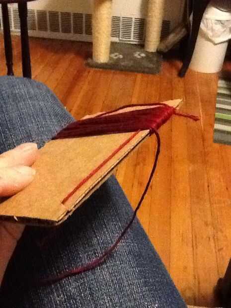 Envuelva el hilo alrededor de la cartulina, en la misma dirección como comenzó, varias veces. Como tal vez 20 o asi.