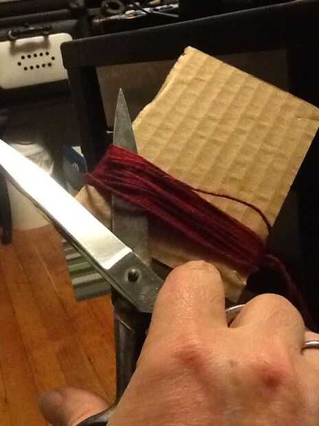 Tomar las tijeras y cortar el extremo del hilado de la cartulina