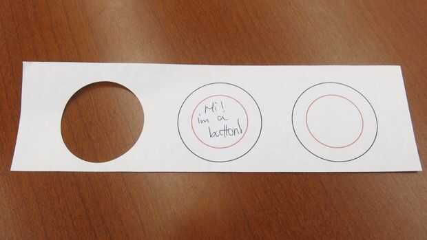 Sólo 1,25 pulgadas será visibles en el botón. El resto aparecerá en el interior borde. También se podría utilizar cualquier pedazo de papel que es no más grueso que el papel de la impresora estándar. Papel más grueso puede atascarse la prensa.