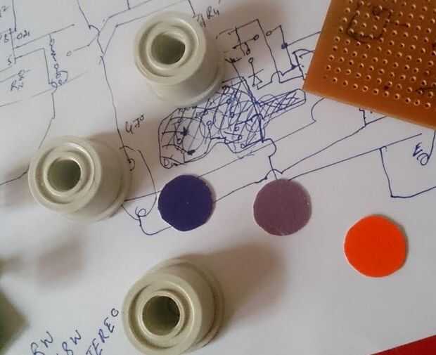 Envuelva un pote dicen K 1 potenciómetro del eje con papel fino, poner en el centro de mando y relleno de pegamento caliente