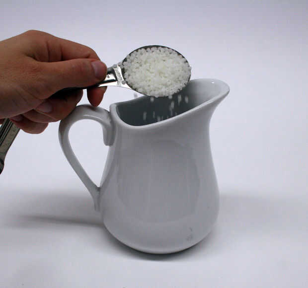 Agregar 1 cucharada de cera rallada (yo usé perlas de cera de abejas) en el recipiente para microondas.
