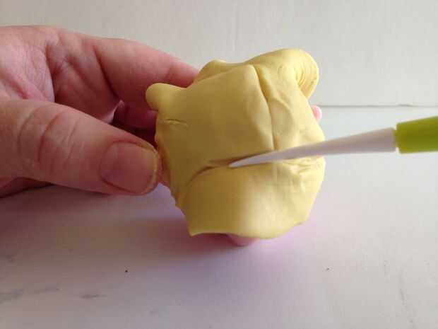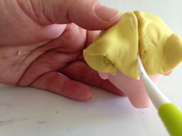 A partir de una bolita de barro amarillo, me pellizca y tiró de él en un plano alrededor de la pieza.