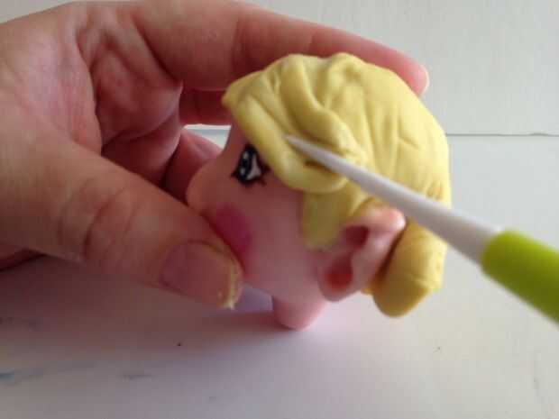 Después de que la pintura había fijado y todo se había secado bien otra vez, decidí que era hora de darle a Elfie algún pelo.