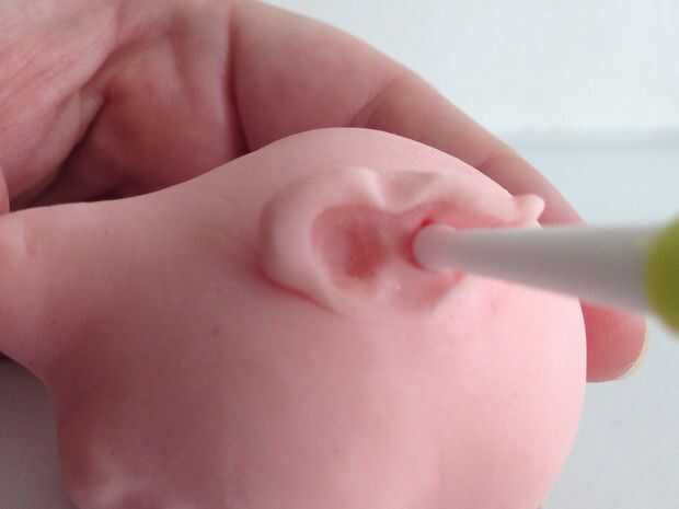 También poner una gota de agua en cada oreja y me fui con mi pelota herramienta para obtener alisado hacia fuera un poco más.