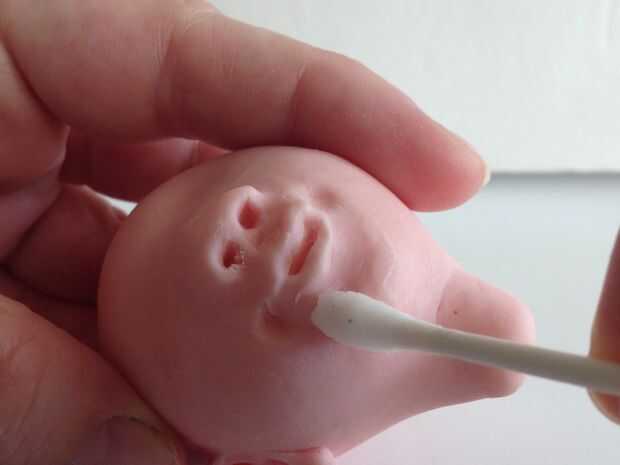 Para el área alrededor de la boca, usé un hisopo de algodón humedecido en agua para disolver la superficie de la arcilla y alíselo. Tenga cuidado de no hacerlo demasiado mojada ya que se disuelve muy fácilmente.