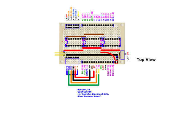 Se ha añadido conector Bluetooth como alternativa. Si desea utilizar Bluetooth en vez de Xbee, tienes que quitar el módulo XBee. Y tienes que quitar Bluetooth de la toma, cuando se carga el sketch a la placa Arduino. Desde todas estas tres comparten el mismo puerto de comunicación Serial.