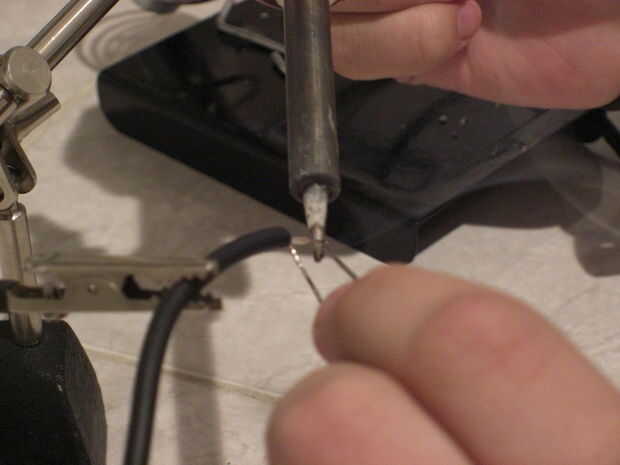 Poner la punta de la plancha en el final de la misma y deslice la soldadura desde el frente hacia atrás