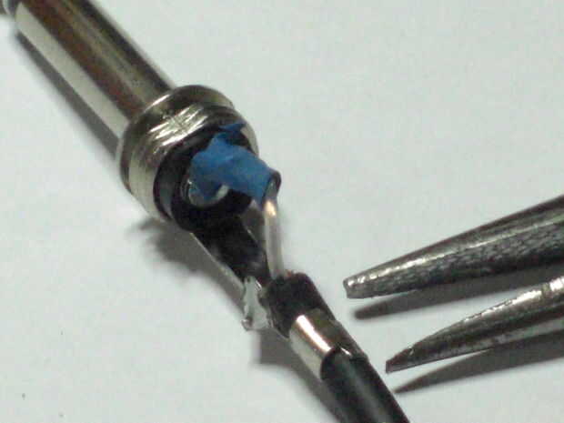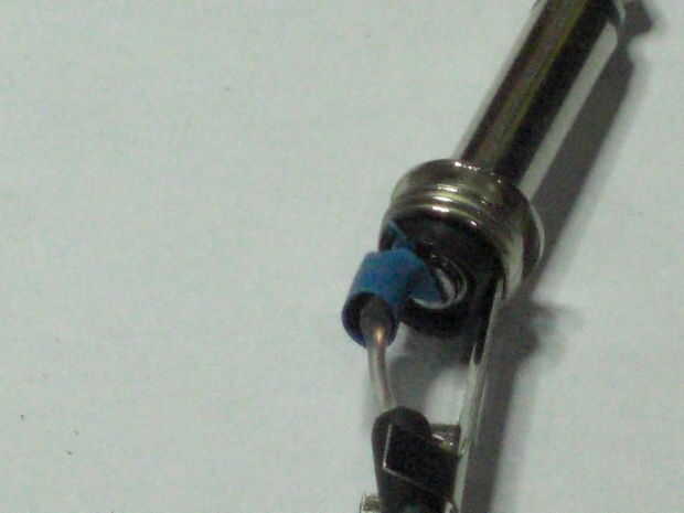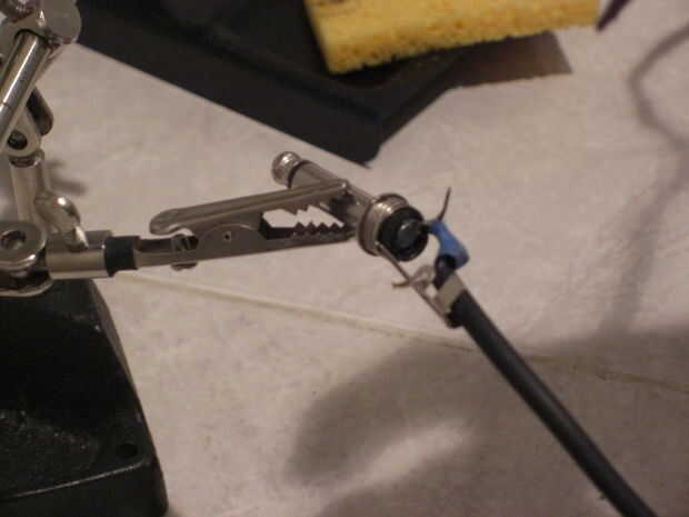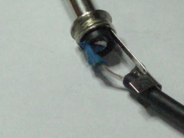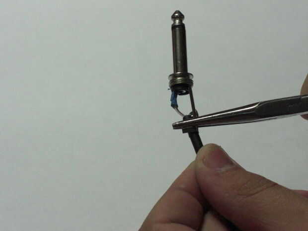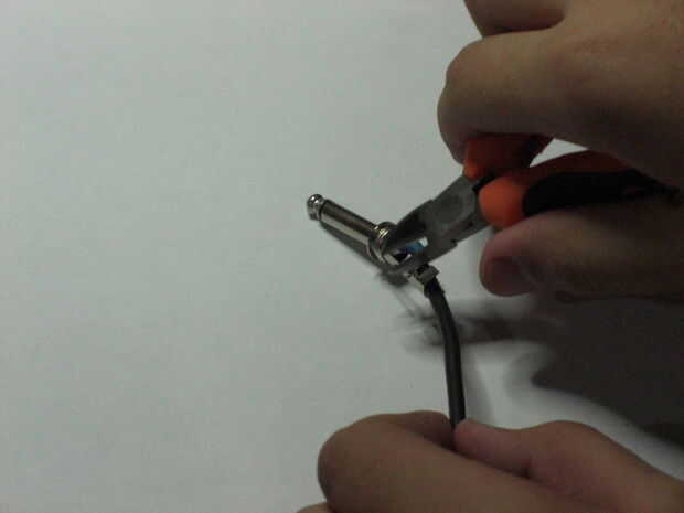 Utilizando sus pinzas, doble el alambre, fueron el alivio de tensión son las pestañas.