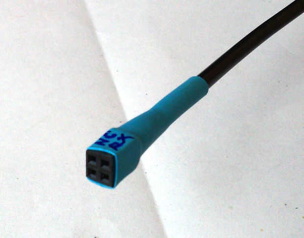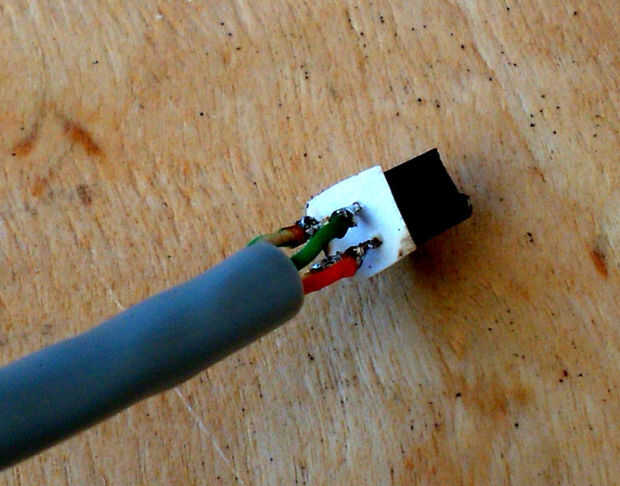 Después de que yo estaba seguro de que son cables de trabajo, puse pegamento caliente, lo dejó un tiempo para endurecerse, después el tubo que se contrae y use la pistola de aire caliente.