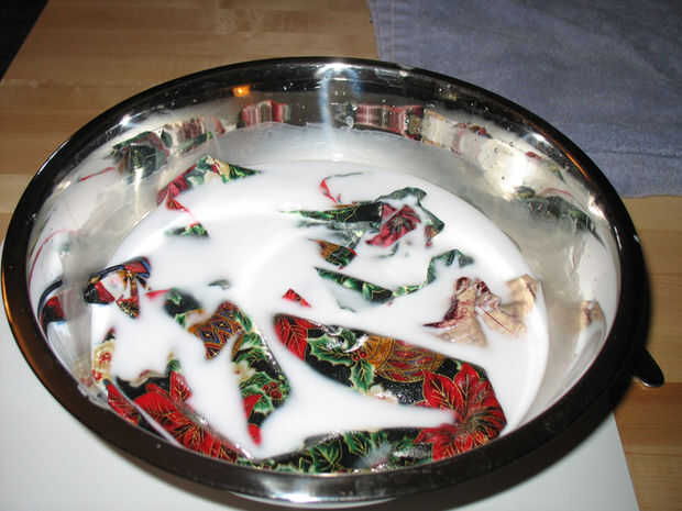 Consejo: Si desea que sus cajas para ser realmente rígidos, "doble inmersión" la tela. Cuando estoy haciendo cajas que necesitan una "cartón" textura, me moje a la tela y deje que se seque. Pues yo a mojar otra vez.