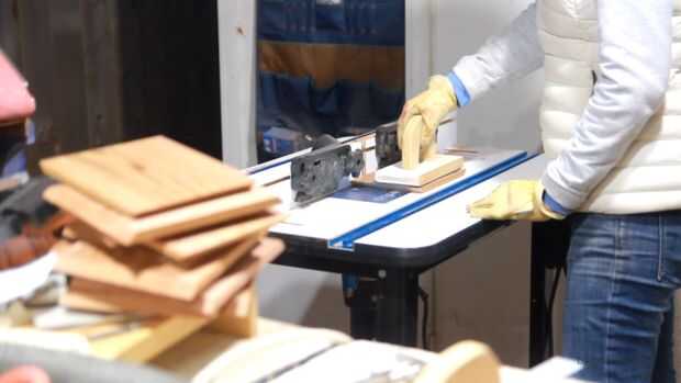 Quiero fondos para sentarse dentro de un rebajo en las cajas por lo que estoy utilizando aquí la mesa de la fresadora para hacer una ranura en el espesor de la madera que es aproximadamente 1/4 de pulgada.