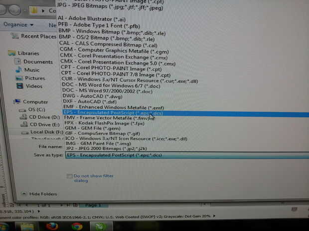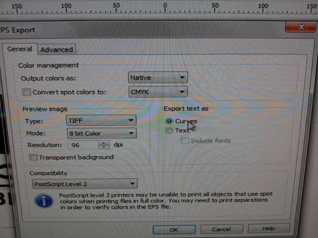 En primer lugar vamos a tomar nuestra imagen y asegúrese de que está en un tipo de archivo podemos utilizar. Debe ser un archivo EPS, por lo que abriremos nuestra imagen (en este caso estoy usando CorelDraw) y exportar a EPS. Cuando exportamos a EPS es mejor seleccionar la opción de exportar el texto como curvas.
