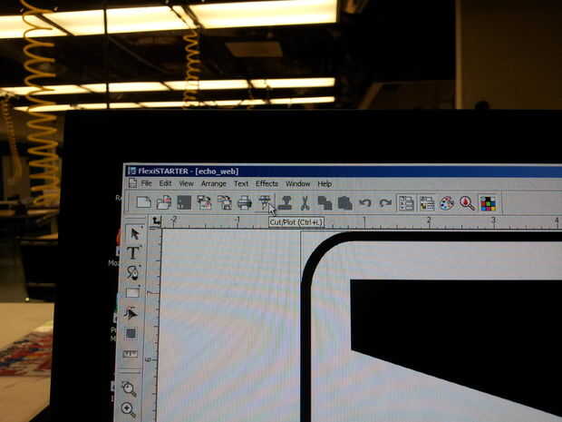 Una vez que hemos colocado y ampliar nuestra imagen estamos listos para cortar en el vinilo. Haga clic en el icono de hoja en la parte superior de la pantalla o elija Archivo -> cortar