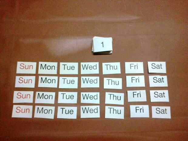 Necesita cuatro juegos de los días y las fechas desde el 1 al 31