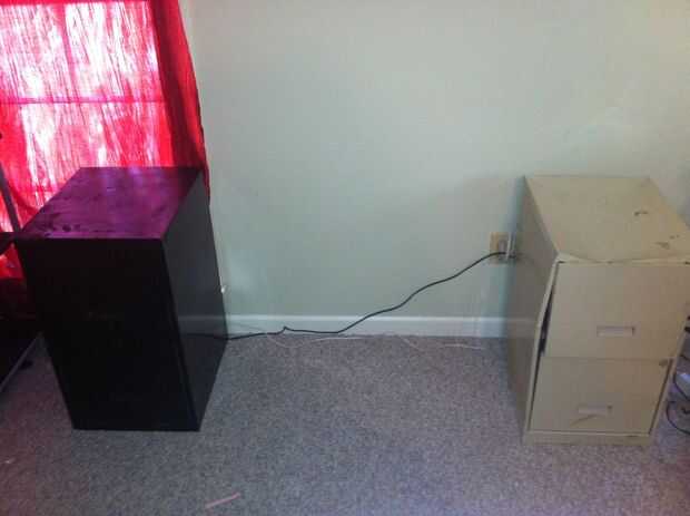 Clavo o líquido de uñas del aglomerado a la puerta y coloque encima de archivadores.