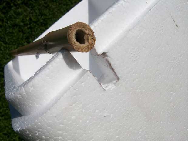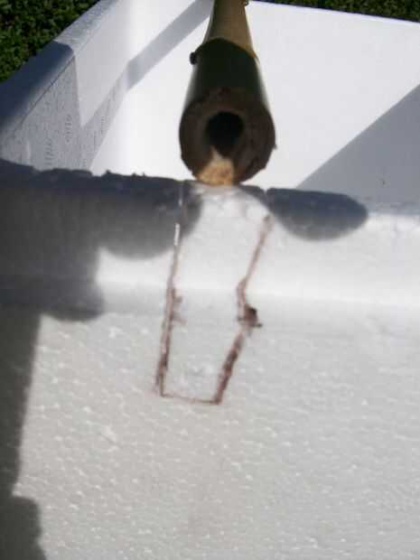 Esta es la primera y última vez lo hice, jajaja. nada es realmente medida aquí así que corte la parte superior del bambú se encuentra al ras con la parte superior del labio de la tapa... y también la forma cónica lo ligeramente para que el bambú es sostenido en lugar por los lados.