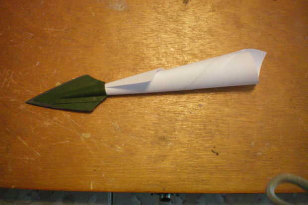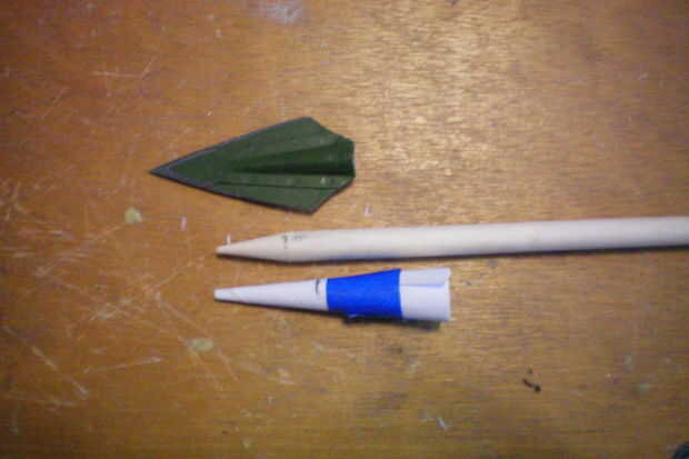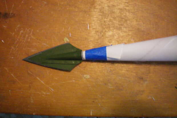 Hacer un cono con el papel, introducirlo en el campo de punta o broadhead. Liberar el cono, para que se expande para llenar el interior de la punta. Una vez en el lugar, el cono de papel para sujetarlo en la parte trasera del punto de tiro con arco de la cinta y cortar el papel por encima de la cinta.