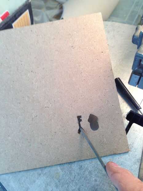 Dibujar la forma deseada a la madera, perforar y recortar con una sierra de contornear. puede sujetar, pegamento o incluso perno juntos el molde de dos partes. Es una buena idea para hacer unas pocas repeticiones de su molde, tardé 5 moldes para obtener una buena parte! Un molde de esta naturaleza sólo es bueno para un casting.