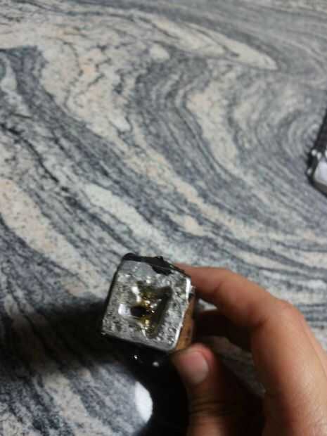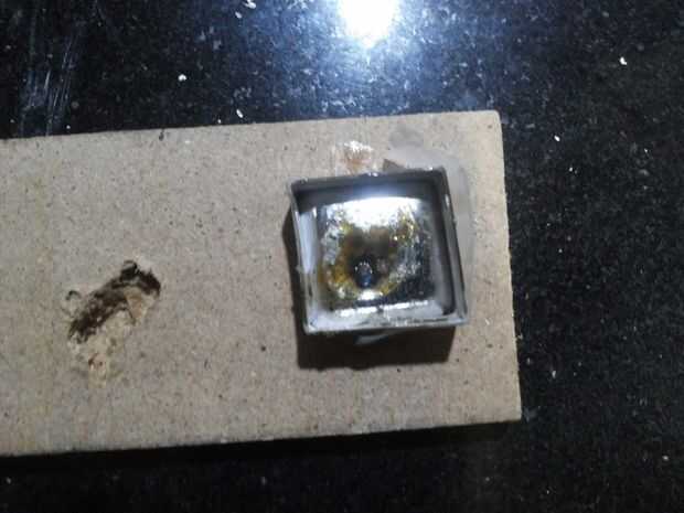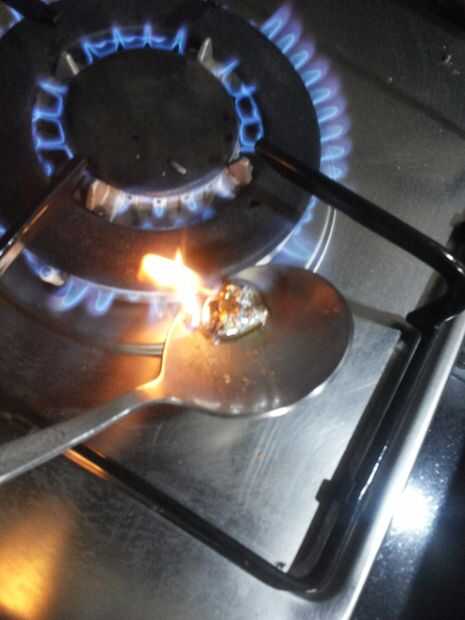 Derrita la soldadura de alambre en una cuchara de metal en una estufa de gas