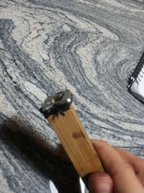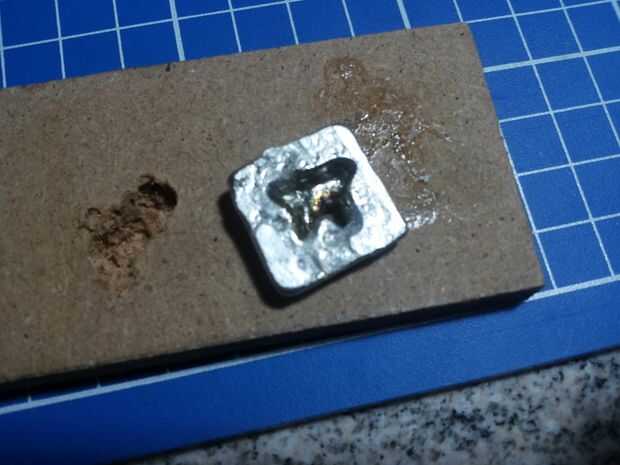 Coloque el sello en una pieza de madera con resina para que sea fácil de usar