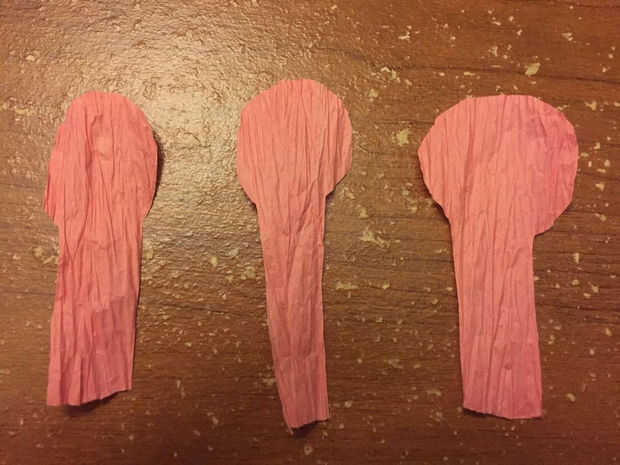 Cortar 2-3 en forma de un pequeño árbol que se muestra en la imagen para cada pedazo de papel de hilo.