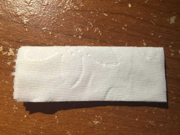 Usar una pequeña cinta para pegar los extremos del pañuelo de papel para hacer más fácil el siguiente paso.