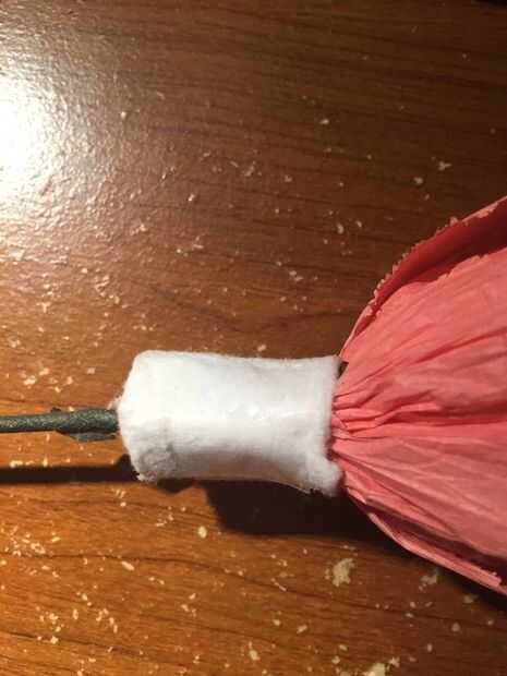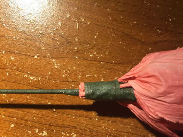 Luego enrolle el tejido doblado sobre su cinta floral para formar la base de su cáliz.