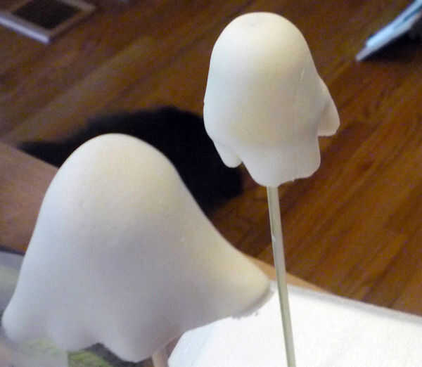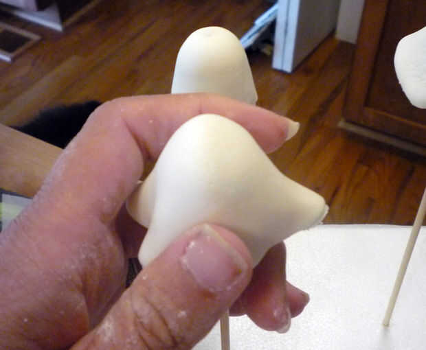 Utilice suavemente los dedos para suavizar el fondant alrededor del rolo, haciendo un poco 'fantasma'. El fondant es lo suficientemente elástico que si trabajas poco a poco, te evitarás las costuras.