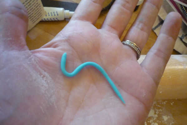 Azul: Corte la forma de ver es foto 7 de fondant azul. Se adhieren a la cabeza.