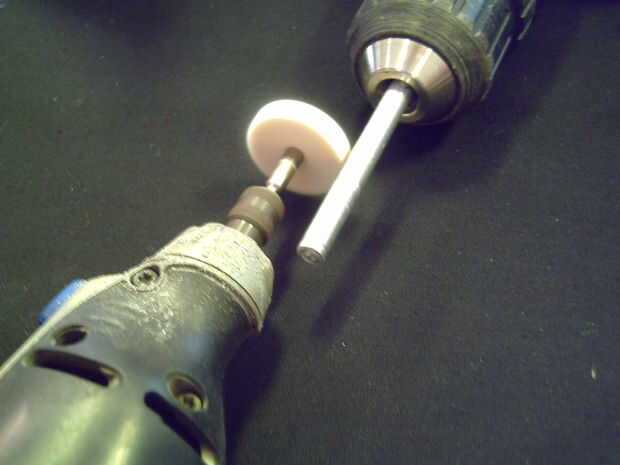 Poner una barra en el taladro y girar. Mientras gira, frote el pulimento abrasivo sobre él, creando una capa uniforme de esmalte. Ahora pulir a baja velocidad con el wheel(see fig.1) pulido. Repetir este proceso dos o tres veces. Ahora Afloje la varilla del taladro y darle la vuelta y repetir del otro lado.