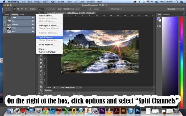 3. en la caja de canales, haga clic en opciones y seleccione "Dividir canales."