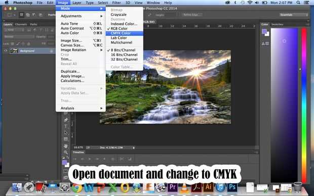 1. Abra el documento en Photoshop y vamos a imagen > modo > color CMYK.