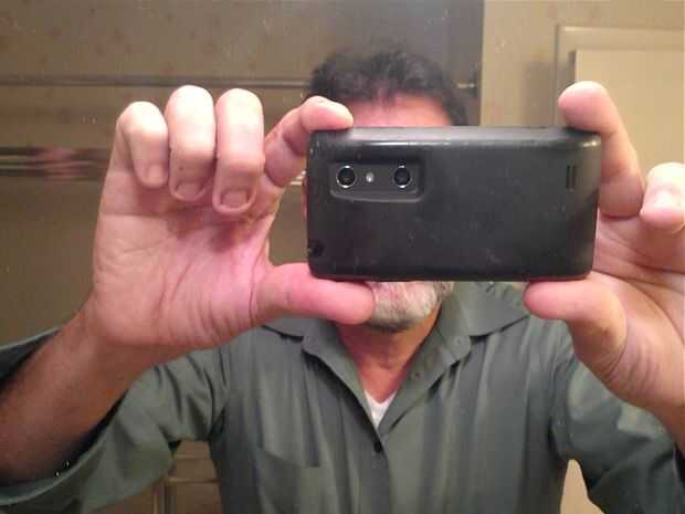 1. Desatornille el "fin del negocio" de una seguridad de bajo costo puerta viendo el lente.2. fijarla (temporalmente) sobre la lente de la cámara del teléfono. Por suerte mía fue un firme pon en la caja de goma, pero Blu-Tack® o similar habría h