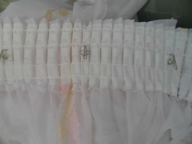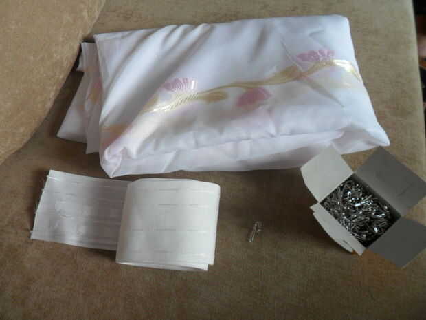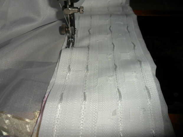 instalar la cinta en su zona preparada por coser 3 líneas: uno al lado del borde superior, uno al lado del borde inferior y uno entre filas de ganchos