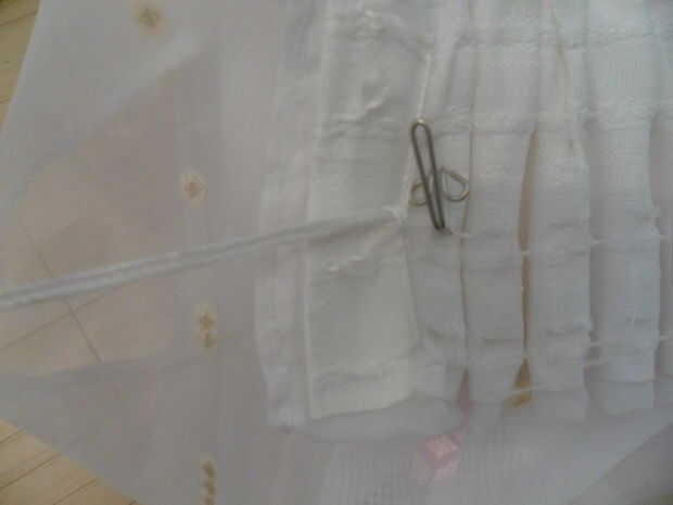 en la parte superior de la cortina de voltear la tela por la longitud de la cinta por lo que habrá doble capas de tela bajo la cinta