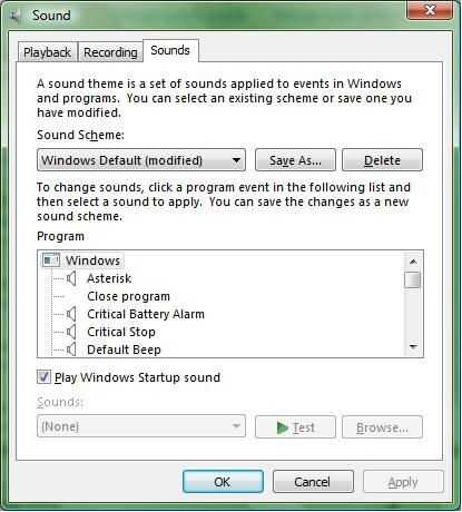 5. Asegúrese de que se encuentra en Windows por defecto modificada en caso contrario no se puede editar el sonido