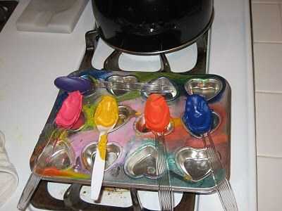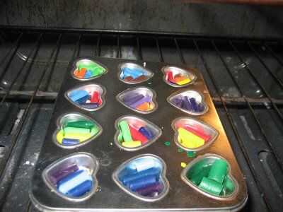 Ver como las ceras de fusión en 5 a 15 minutos (depende de la cantidad o crayones en cada bandeja).