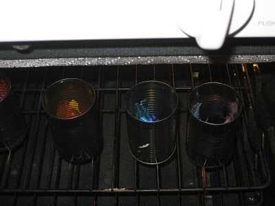 Sacar del horno (si en latas vierta cada color en la bandeja, permite que 30 a 60 segundos entre cada color para no mezclan las capas.)