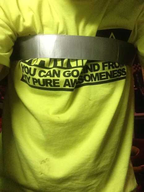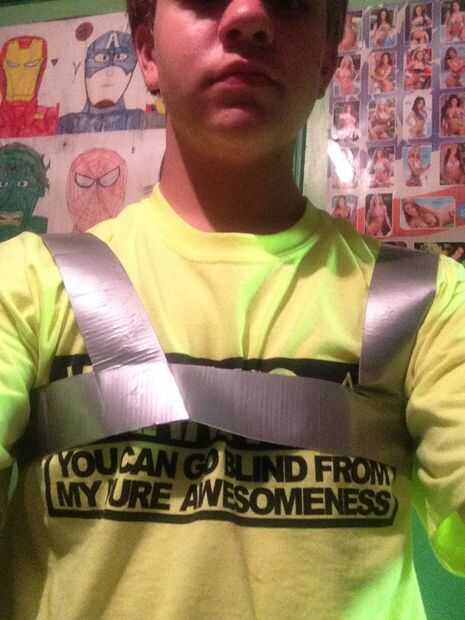 Primero, mida alrededor de la mitad de su pecho completamente alrededor de su espalda. Probablemente será imposible más pensar, así que tome esa longitud y dividirlo por dos. Luego, cortar cuatro trozos de cinta que son de ese tiempo. Dos de ellos y de la endecha uno encima el lado pegajoso, tocar y lo mismo para las otras dos. Cortar cuatro tiras de cinta de cuatro pulgadas de largo. Poner uno en el extremo de una tira para que la mitad colgando. Conecte el extremo de la otra tira de borde a borde de la primera y cubrir la costura con otra pieza de 4 pulgadas. Luego con cinta adhesiva en un bucle. Poner el lazo en el pecho como en el sexto cuadro. Ahora para hacer los tirantes. Medir desde la parte inferior de la banda de pecho en la parte de atrás sobre su hombro a la parte inferior de la tira del pecho en el frente. Repetir lo que hizo para la construcción de la pieza principal excepto no hacer en un bucle. En su lugar, coloque la primera tira de cuatro pulgadas en el extremo de la tira por lo que parece una "t" al final. Coloque al frente de su pechera para que se vea como en la foto. Luego, voltear el aparejo alrededor por lo que es la parte adjunta a tu espalda. Repita el proceso de grabación para acoplar el otro extremo de la tira. Repita este paso para que pueda obtener un sujetador de los deportes buscando cosa.