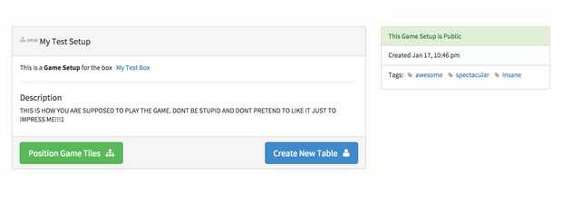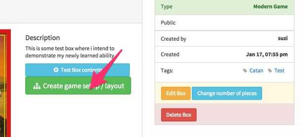 Hay 2 formas de hacerlo. La primera y más sencilla es hacer clic en el botón verde que dice crear juego configuración y diseño. La segunda opción es ir a la página crear nuevo y haga clic en Crear su diseño de mesa favorito, entonces usted tiene que navegar a través de los cuadros de juego, el cuadro Buscar y haga clic en el botón verde. La primera manera es más fácil, te lo dije.