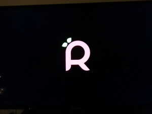 La pantalla puede cambiar de una barra de progreso a una R roja varias veces. La R roja se parece a esta imagen. Esto es normal. Sea paciente y deje continuar.