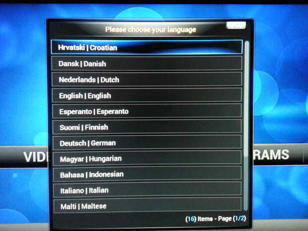 Finalmente después de unos 20-30 minutos Kodi arrancar y preguntarle qué idioma le gustaría. Elegir el adecuado para usted.