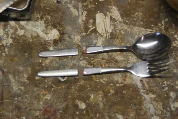 -corte ahora cubiertos de tamaño -después el corte tienes que moler apagado los pedazos grandes -enfriar el proyecto que en un rato para no quemarse los dedos