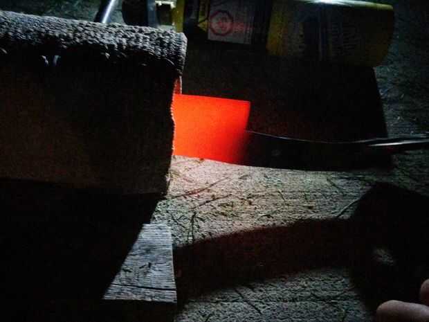 Un cuchillo de tratamiento térmico es el proceso que pone de manifiesto las características verdaderas de cuchillo, hasta este punto el acero ha sido relativamente suave y "fácil" trabajar con. Después de este punto que será mucho más difícil de trabajar con la hoja así que es lo que desea.