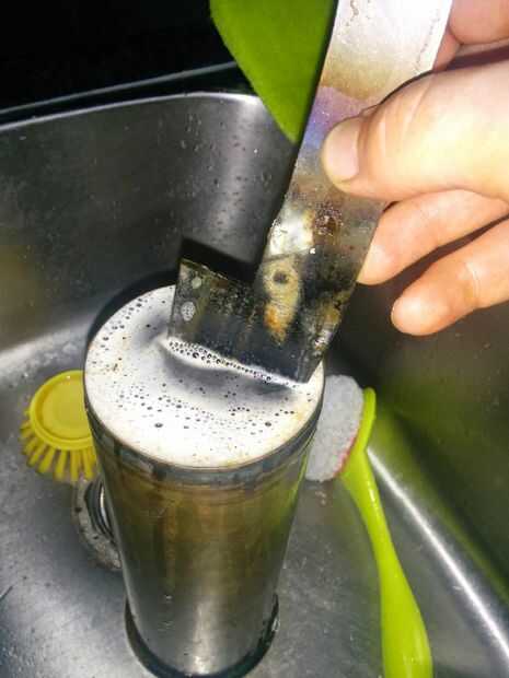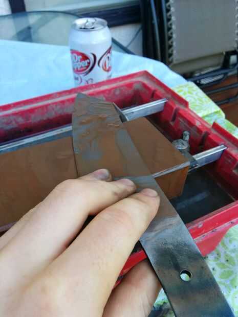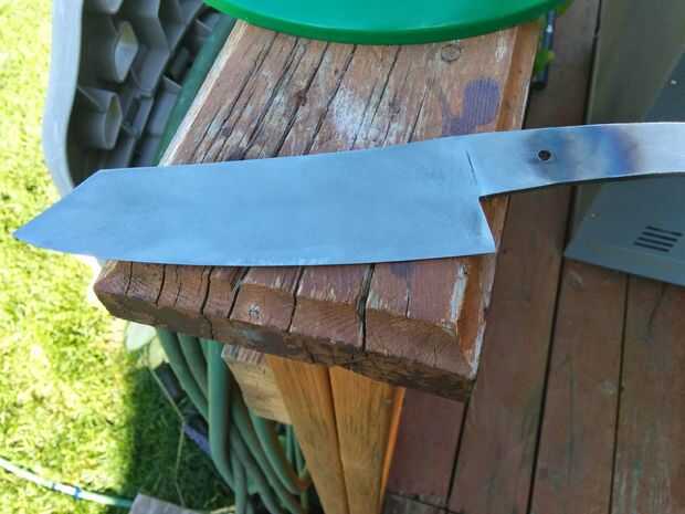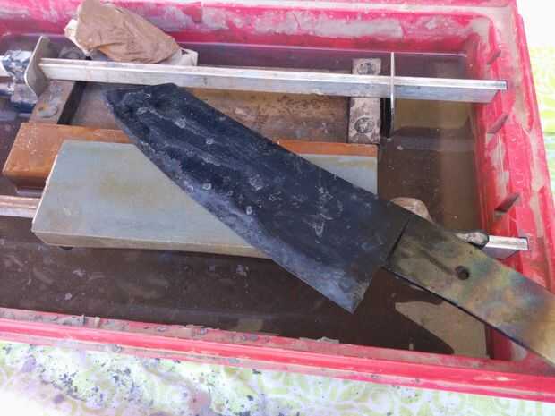 Cuando usted apaga el movimiento de la hoja como tú sería para cortar algo hacia adelante y hacia atrás, no moverlo lado a lado como que promueve la deformación. con una capa de bicarbonato de sodio en la parte superior el aceite ayuda a prevención de incendios, si es por ti mismo. Mantenga el corte de dos minutos después de que el cuchillo puede salir el aceite. Ser amable con él porque en este punto es muy frágil y podría agrietarse o chip si. Dar un lavado con agua y jabón para quitar el aceite. Todavía habrá una escala de negro en el exterior de la cuchilla, pero eso es normal, no te molestes en quitar todo. Si no has tratado un cuchillo antes de tratar de frotar un archivo contra la hoja recién endurecida, debe pasar por alto y no deja marcas poco /. Si muerde en la hoja y luego intenta de calefacción y enfriamiento nuevamente.
