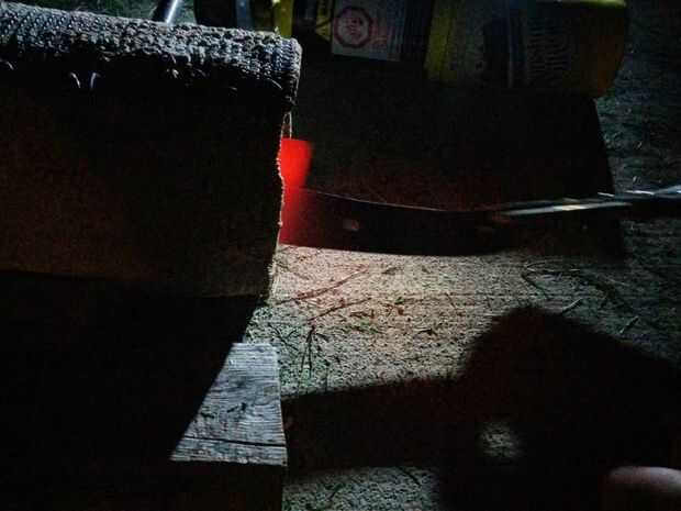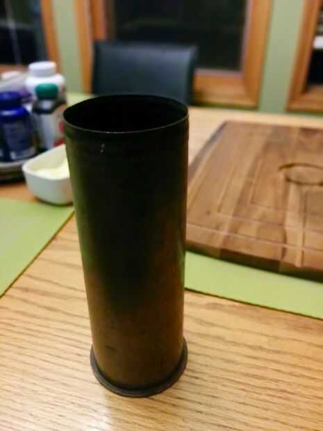 La mayoría de los aceros de herramienta requiere un Temple de aceite, aceite de motor viejo funciona bien; sin embargo, se garantiza casi a punto de estallar en la llama cuando usted apaga la hoja. Si no quiere tener que lidiar con un aceite de canola o aceite de oliva funciona muy bien el fuego. Ya sea que manera es bueno estar preparado para un incendio de aceite así que tener un extintor de incendios, o caja de bicarbonato de Sosa, en mano. NUNCA INTENTE APAGAR UN FUEGO DE ACEITE CON AGUA!!!!!! Debe haber suficiente aceite para sumergir totalmente la hoja, el tang(handle) realmente no necesita ser tratado en el cuchillo del chef así que no te preocupes con calor. El contenedor no debe ser a prueba de fuego, resistentes, plástico o madera, un recipiente de metal funciona bien cilíndrica si es posible. Usé un viejo proyectil de artillería.