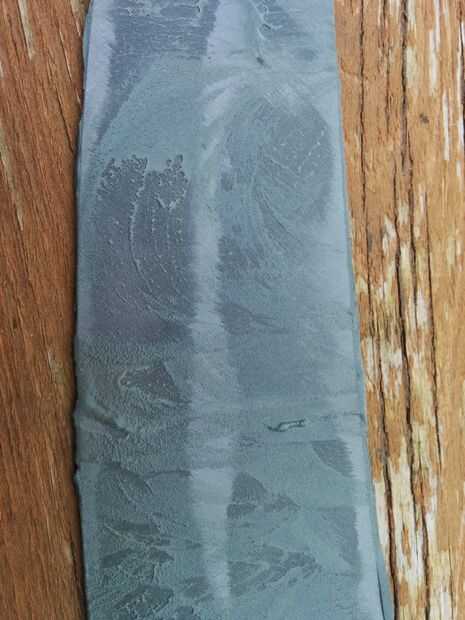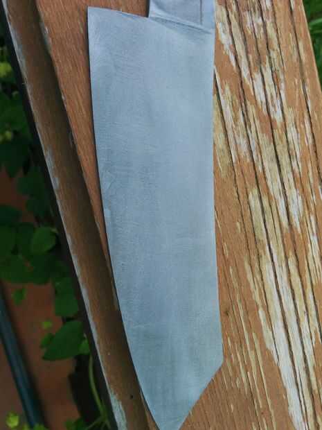 Pulido de la hoja del cuchillo no sólo hace que se vea mejor pero ayudará a la corrosión y la coloración. Más suave puede conseguir la superficie menos agua probable es pegarse y manchar la hoja. Usé un conjunto de tres piedras para pulir mi cuchilla. Comencé en una piedra rugosa (grano 300-400), luego se trasladó a una piedra más fina, (grano 800) y terminado en la piedra más fina que tengo (grano 1200). El resultado es brillante pero no espejo brillo.