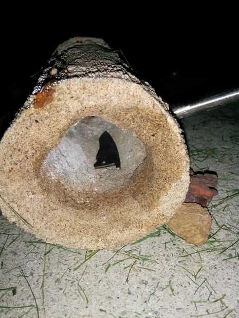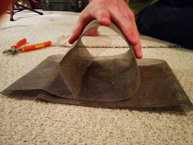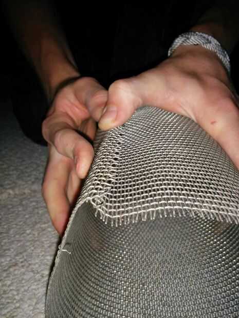 Así que si decide hacer el tratamiento térmico se necesita una fragua, se podía comprar uno, pero creo que la mayoría de la gente leyendo esto construir algo propio. Mi fragua se basa de los compañeros puede forjar sopa instructable de Instructables autor NightHawkInLight, sin embargo hice mía más grande para acomodar los cuchillos del cocinero. Usaba el mismo material refractario hecho casero, la arena y el yeso de París, pero en vez de una lata utiliza una malla de acero que se cortan y luego "cosida" con alambre de cobre. Usted puede probar para ver si la fragua calienta bastante tratando de fundir la sal de mesa común (NaCl), se funda en torno a la misma temperatura es necesaria para el tratamiento de los cuchillos.