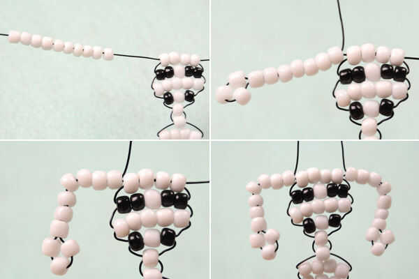 Diapositiva 10 cuentas blancas para alambre, hilo de rosca el cable a través de las cuentas de 4 º-10 º y apriete, luego doble el cable hacia abajo desde el lugar entre el grano de 7 a 8, lo mismo para hacer el otro brazo;