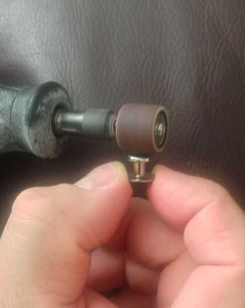 Con la herramienta tipo dremel, moler la tapa botón de plástico plana. Esto toma sólo unos segundos por birlo. Asegúrese de no moler la pieza de metal. usted quiere hacer la superficie tan plana como sea posible.